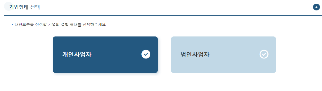 2.기업 형태 선택: 개인사업자 또는 법인사업자를 선택합니다.